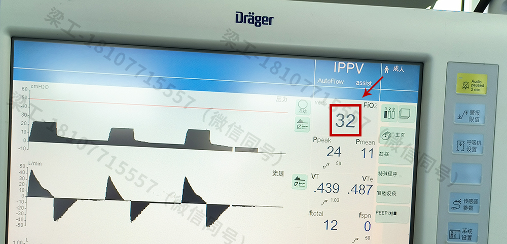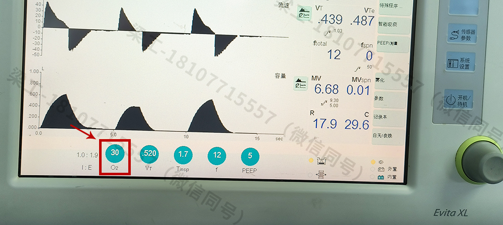 接好氧氣管和空氣管,然后開機到正常工作頁面