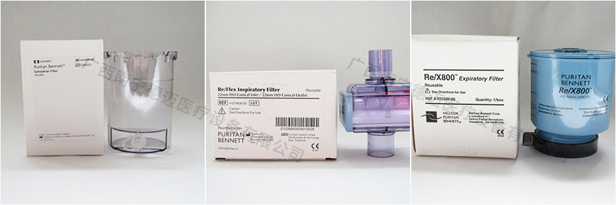 1.將呼出端過濾器鎖扣向右邊旋轉(zhuǎn),聽到“咔”的一聲即可。 2.將集水杯排水口膠塞與呼氣支口對準(zhǔn)在同一水平線上,將集水杯卡緊在過濾器下方,然后往左邊扭緊。 3.將呼吸機主機左側(cè)鎖定裝置往上提拉至解鎖狀態(tài)。 4.將呼氣支口朝外,沿滑軌放入,并使呼出端過濾器邊緣滑到安裝槽內(nèi),推到最里面,推到不能推動為止;放下左側(cè)鎖定裝置,固定呼出端過濾器。 二、拆卸 1.將左側(cè)鎖定裝置往上提拉至解鎖狀態(tài),取出呼出端過濾器。 2.將呼出端過濾器鎖扣向右邊旋轉(zhuǎn),取下集水杯。 3.將集水杯內(nèi)的冷凝水倒入專門收集醫(yī)療廢棄物的容器。 (因為集水杯的冷凝水可能帶有傳染病菌) 4.擦干呼出端過濾器及集水杯的水珠,送去供應(yīng)室進行消毒。 三、消毒 PB840呼吸機的呼出端和吸氣端過濾器應(yīng)該采用高溫高壓的方式進行消毒(溫度132-134℃,20分鐘) 注意:溫度不宜超過135℃,禁止浸泡! 四、PB840呼吸機耗材(呼出端過濾器集水杯、吸入端過濾器、呼出端過濾器) PB840呼吸機流量傳感器 PB840呼吸機兼容氧電池 PB840呼吸機空壓機保養(yǎng)套件