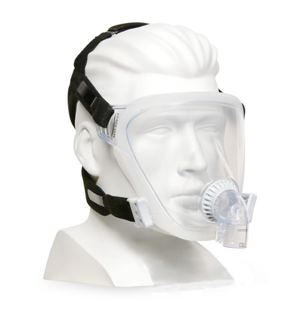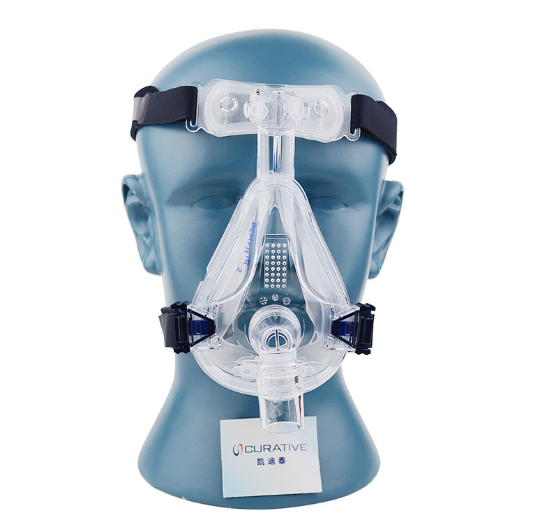 臉部全部被覆蓋,適用于其他面罩解決不了的漏氣患者和面部或鼻部有創(chuàng)傷或者存在解剖學(xué)異常的患者。