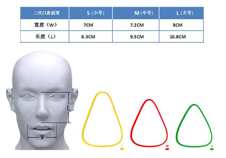 佩戴時(shí),把面罩下部的鼻墊先貼合在下嘴唇的下部,把面罩逐步由下而上貼合到鼻部,注意不要從鼻梁開(kāi)始往下佩戴面罩