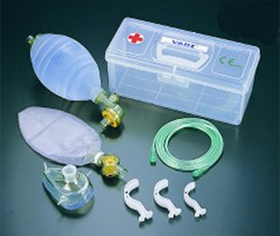 1、簡易呼吸囊一套,檢查簡易呼吸囊各配件性能并連接(a、面罩完好無漏氣,充氣程度b、單向閥安裝正確,工作正常c、壓力安全閥是否開啟d、氣囊及貯氧袋完好無損,無漏氣,e、氧氣連接管是否配套
