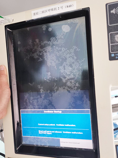故障現(xiàn)象: 呼吸機(jī)報(bào)警:氧氣濃度過(guò)低,其他正常。 故障分析: PB840呼吸機(jī)氧濃度過(guò)低報(bào)警一般原因有:墻面供氧壓力不足;氧電池失效造成氧濃度檢測(cè)不準(zhǔn)確;氧氣流量傳感器出現(xiàn)故障。分析原因后進(jìn)行故障排查和檢修。 解決方法: 第一步校準(zhǔn)氧氣流量傳感器,結(jié)果通過(guò),但出現(xiàn)錯(cuò)誤提示; 第二步檢查中心供氧進(jìn)入病區(qū)的氧氣壓力,壓力表顯示氧氣壓力正常,排除氧氣壓力故障; 第三步測(cè)量氧氣傳感器連接線,接線正常且外觀正常,則考慮是否是氧電池有問(wèn)題。 監(jiān)測(cè)氧濃度的氧電池位于呼吸輸送系統(tǒng)的呼入管道內(nèi),氧電池用于監(jiān)測(cè)混合氣體的氧濃度。PB840呼吸機(jī)氧電池使用壽命為一年左右。 排除上述原因后,確定是氧電池的故障。 更換氧電池后開(kāi)機(jī),進(jìn)行EST自檢,檢測(cè)通過(guò),再次使用,檢查氧濃度設(shè)定值與所監(jiān)測(cè)到的供氣氧濃度相吻合,且線性變化良好,一切正常,故障解除。 二、無(wú)法連接設(shè)置病人 故障現(xiàn)象: 呼吸機(jī)開(kāi)機(jī)后顯示無(wú)法連接設(shè)置病人,呼吸機(jī)錯(cuò)誤,且有聲光報(bào)警。 故障分析: 重新開(kāi)機(jī),報(bào)警依舊,由于呼吸閥測(cè)試屬于擴(kuò)展式自檢,所以進(jìn)行擴(kuò)展式自檢,結(jié)果失敗,提示有兩個(gè)錯(cuò)誤,再次測(cè)試,結(jié)果未變,查看維修手冊(cè),錯(cuò)誤提示為流量傳感器故障。 解決方法: 先拆開(kāi)設(shè)備查看呼吸模塊其他元件,發(fā)現(xiàn)在呼氣閥的密封墊上有很多雜物,判斷這些雜物破壞呼氣閥的密封性,導(dǎo)致流量監(jiān)測(cè)偏離實(shí)際值。 用醫(yī)用消毒酒精清潔,裝好后再次測(cè)試,結(jié)果通過(guò),故障解除。 排除了流量傳感器的故障,節(jié)約了成本。 三、嚴(yán)重阻塞報(bào)警 故障現(xiàn)象: PB840呼吸機(jī)在運(yùn)行過(guò)程出現(xiàn)嚴(yán)重阻塞報(bào)警。 故障分析: PB840呼吸機(jī)在運(yùn)行過(guò)程中出現(xiàn)阻塞報(bào)警,通常是由兩種情況導(dǎo)致,可能是管道出現(xiàn)積水或折疊,,也可能是吸入端或呼出端發(fā)生過(guò)濾器堵塞。 一、此種情況下,報(bào)警會(huì)出有兩種顯示:即Severe ocelusion和Screen blocked。 ① 如果呼吸機(jī)顯示Severe ocelusion,就表明呼吸機(jī)管道出現(xiàn)了阻塞,清理管道異物或更換管路就可解決。 ② 如果呼吸機(jī)顯示Screen blocked,,就提示呼吸機(jī)觸摸屏感應(yīng)出現(xiàn)了故障。 二、觸摸屏感應(yīng)故障分為3種情況:局部失靈、反應(yīng)遲鈍和根本無(wú)反應(yīng)。 ① 局部失靈一般由紅外發(fā)射或接收損壞導(dǎo)致; ② 反應(yīng)遲鈍一般是屏幕外框集聚了過(guò)多灰塵,阻斷了紅外發(fā)射和接收,也有可能是內(nèi)部灰塵多; ③ 根本無(wú)反應(yīng)則是因內(nèi)部觸摸框板固定不佳,出現(xiàn)偏位,重新固定或調(diào)整能解決。 ④ 如是根本不靈敏,可能是觸摸框板損壞或顯示屏主板壞。 解決方法: 先對(duì)外部管路進(jìn)行檢查,包括呼出過(guò)濾器、吸入過(guò)濾器、積水杯等,并檢查呼吸管道是否有積水、分泌物過(guò)多或折疊,如果均正常的話,就運(yùn)行快速自檢。在自檢過(guò)程中,如果流量傳感器不能通過(guò)測(cè)試,且出現(xiàn)錯(cuò)誤代碼FS0001和FS0003,就說(shuō)明呼出端過(guò)濾器出現(xiàn)故障。 呼出過(guò)濾器內(nèi)部的過(guò)濾紙應(yīng)保持干燥,如果發(fā)現(xiàn)進(jìn)水痕跡,則用高溫高壓消毒烘干,或者進(jìn)行更換,呼吸機(jī)就可正常運(yùn)行。 注意事項(xiàng): 呼出過(guò)濾器拆裝過(guò)程中,必須要確保過(guò)濾器內(nèi)的過(guò)濾紙干燥,也不能將其倒放,防止積水杯的液體倒流,使過(guò)濾紙進(jìn)水受損。 在消毒呼氣過(guò)濾器的時(shí)候,應(yīng)對(duì)其密封圈同步消毒,消毒完成后,將密封圈固定好,避免出現(xiàn)漏氣問(wèn)題。 四、潮氣量偏低 故障現(xiàn)象: 患者參數(shù)設(shè)置中潮氣量為500ml,實(shí)際潮氣量偏低。 故障分析: 如果呼吸機(jī)提示患者潮氣量嚴(yán)重偏低,將呼吸機(jī)潮氣量設(shè)定為450mL,則顯示呼出潮氣量為340mL左右。若患者狀態(tài)正常,出現(xiàn)這種問(wèn)題的主要原因有三種:一是患者回路漏氣;二是主動(dòng)呼出閥臟;三是流量傳感器故障。 解決方法: 若系統(tǒng)診斷日志未出現(xiàn)報(bào)錯(cuò)提示,就運(yùn)行SST檢查呼吸回路是否正常。 如流量傳感器通不過(guò)檢查,可暫時(shí)忽略,繼續(xù)進(jìn)行檢查,直到排除呼吸回路漏氣問(wèn)題。排除漏氣問(wèn)題后,再運(yùn)行EST,觀察漏氣測(cè)試能否通過(guò)測(cè)試,如出現(xiàn)測(cè)試錯(cuò)誤,則檢查和清洗呼出閥。 清洗時(shí),應(yīng)卸下密封圈,使用乙醇進(jìn)行清洗,可解決故障。 再次運(yùn)行EST進(jìn)行復(fù)試,如果系統(tǒng)仍然提示流量傳感器測(cè)試通不過(guò),就需要觀察上半屏流量傳感器數(shù)據(jù)。 如果在測(cè)試過(guò)程中,氧流量傳感器為120L/min時(shí),呼出流量傳感器為100L/min,當(dāng)空氣流量傳感器為120L/min時(shí),呼出流量傳感器仍為100L/min,就可以判定呼出端流量傳感器出現(xiàn)故障,只要將故障流量傳感器更換即可。 五、GUI顯示屏上半屏黑屏 故障現(xiàn)象: 